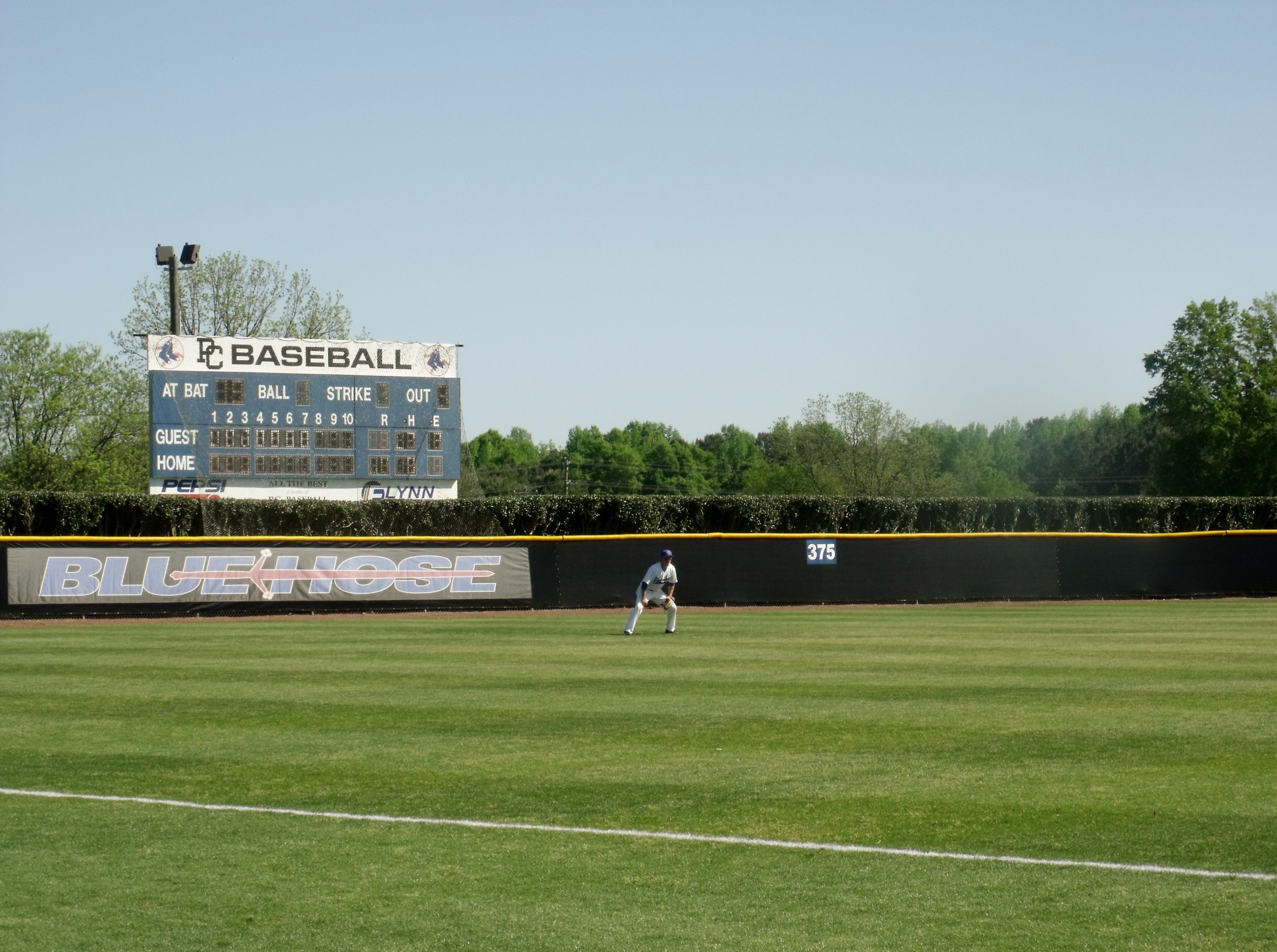 On Monday afternoon, though, the Presbyterian College Blue Hose, the locals, played the Wofford Terriers, and I went over to the diamond, where it was ninety degrees, but it wasn’t like I was pushing a lawn mower.