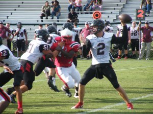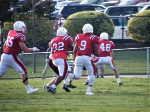 As testimony to the nostalgia attacks I get, while the Red Devils were warming up, it occurred to me that the sophomore quarterback, Konnor Richardson, looks like John Unitas. This isn’t an observation of skill or facial looks. Richardson wasn’t wearing high tops, and he mainly handed the ball off to Clinton’s potent rushers, but his mannerisms struck me. He ambles when he walks. He shuffles his shoulders. He throws the ball straight overhand. When I talked to him on the field afterwards, I realized that he is actually taller than Johnny U. was.