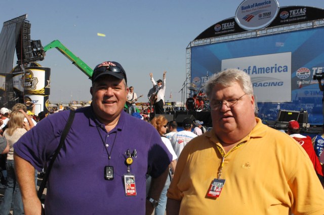 The other involved hanging out in the Texas Motor Speedway infield with the great singer-songwriter Robert Earl Keen Jr. Even though it was in the infield of a NASCAR track, racing didn’t seem to have anything to do with it. I once interviewed Keen for a book, True to the Roots: Americana Music Revealed, and he played a prerace concert at that speedway, during which I had a picture taken with my old friend David Poole, now deceased, with Keen performing in the background.