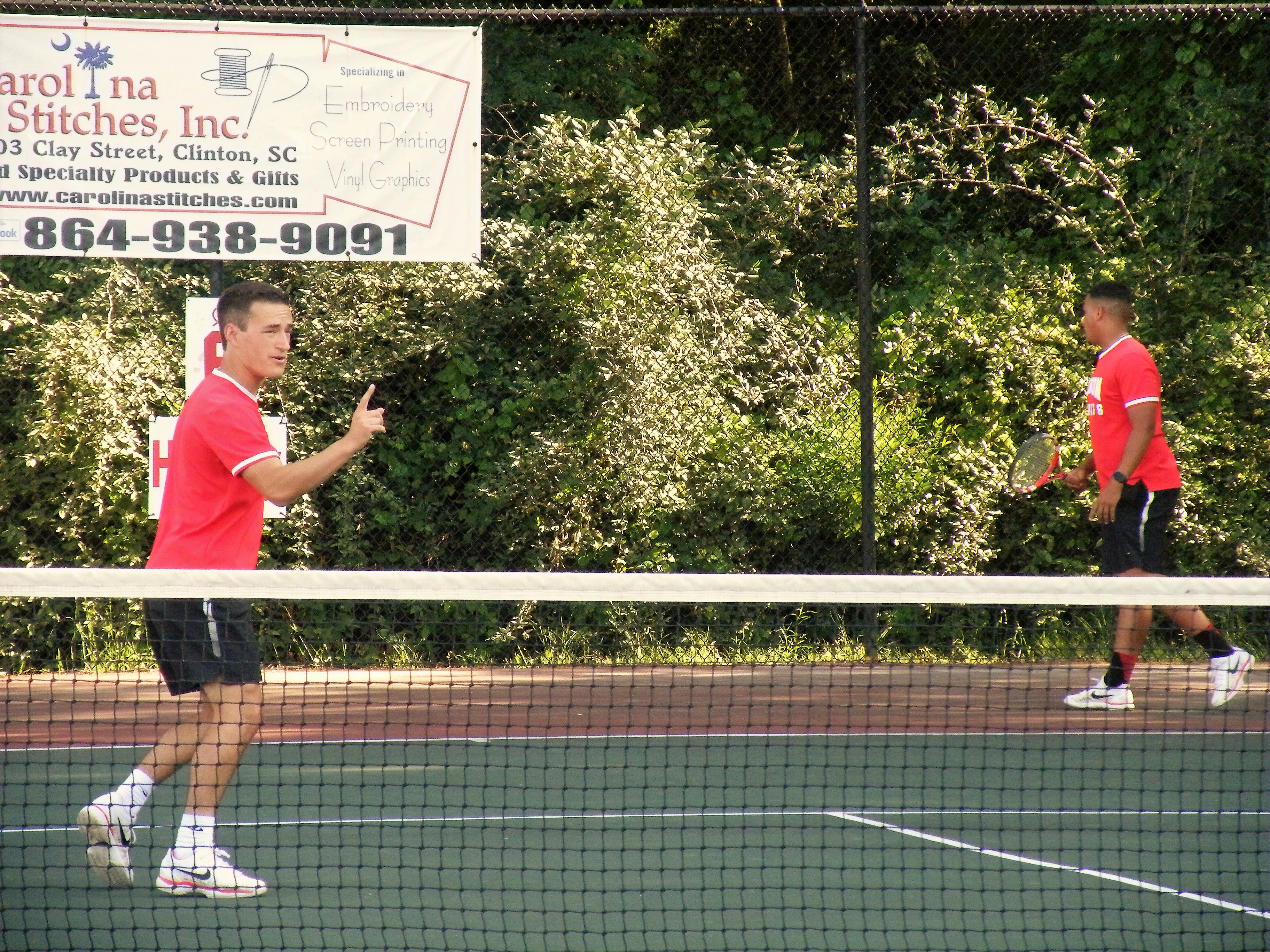 The success brought with it the Voice of the Red Devils, Buddy Bridges, to begin the matches with stirring introductions of the competitors. Everyone else on the team represented Clinton High School except the No. 3 singles player, Tyler Trevino, who is specifically from Joanna because Buddy is from Joanna and knows it is a place like no other.