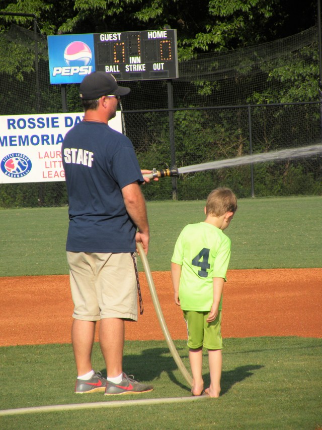 A Little League fan from Greenwood accosted me last night. I was taking photos through the opening in a chain-link fence, and I told the man sitting there that I’d only be there for a few moments because I was taking some photos of the Laurens pitcher. I did not know that his grandson was batting. He said okay.