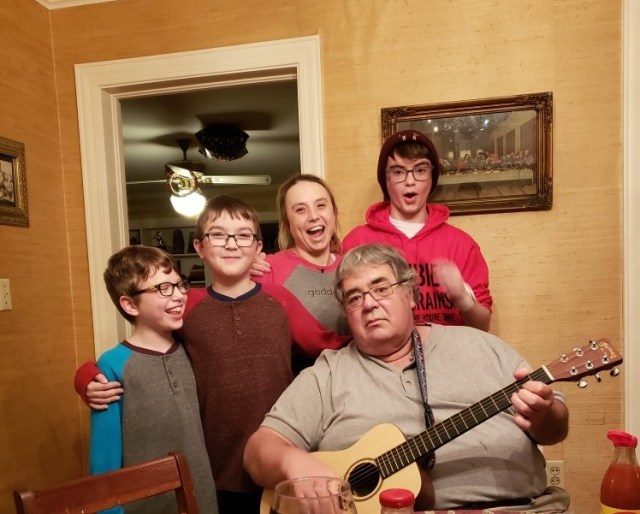 I saw my favorite and only niece, Ella, her husband Tony, and the three boys who adore me, Alex, Anthony and Josh. I hadn’t seen them in a long time. Alex turns 16 later this month. He brought the ukulele he got for Christmas and amazed me at how fast he is picking it up. I brought a small guitar, my Little Martin, and taught Alex how to play along with me on a song we performed for the part of the family present: my mother, Miss Betty, and sister, Ginger; my nephew Ray; Tony, Ella and the boys. Our lives haven’t been successful enough to be feuding like the Hatfields and McCoys, and I sang Hank Williams’ pain songs, Jerry Jeff (Walker’s) train songs and “Blue Eyes Crying in the Rain. At Ray Phillips’ house, weren’t nobody feeling no pain.