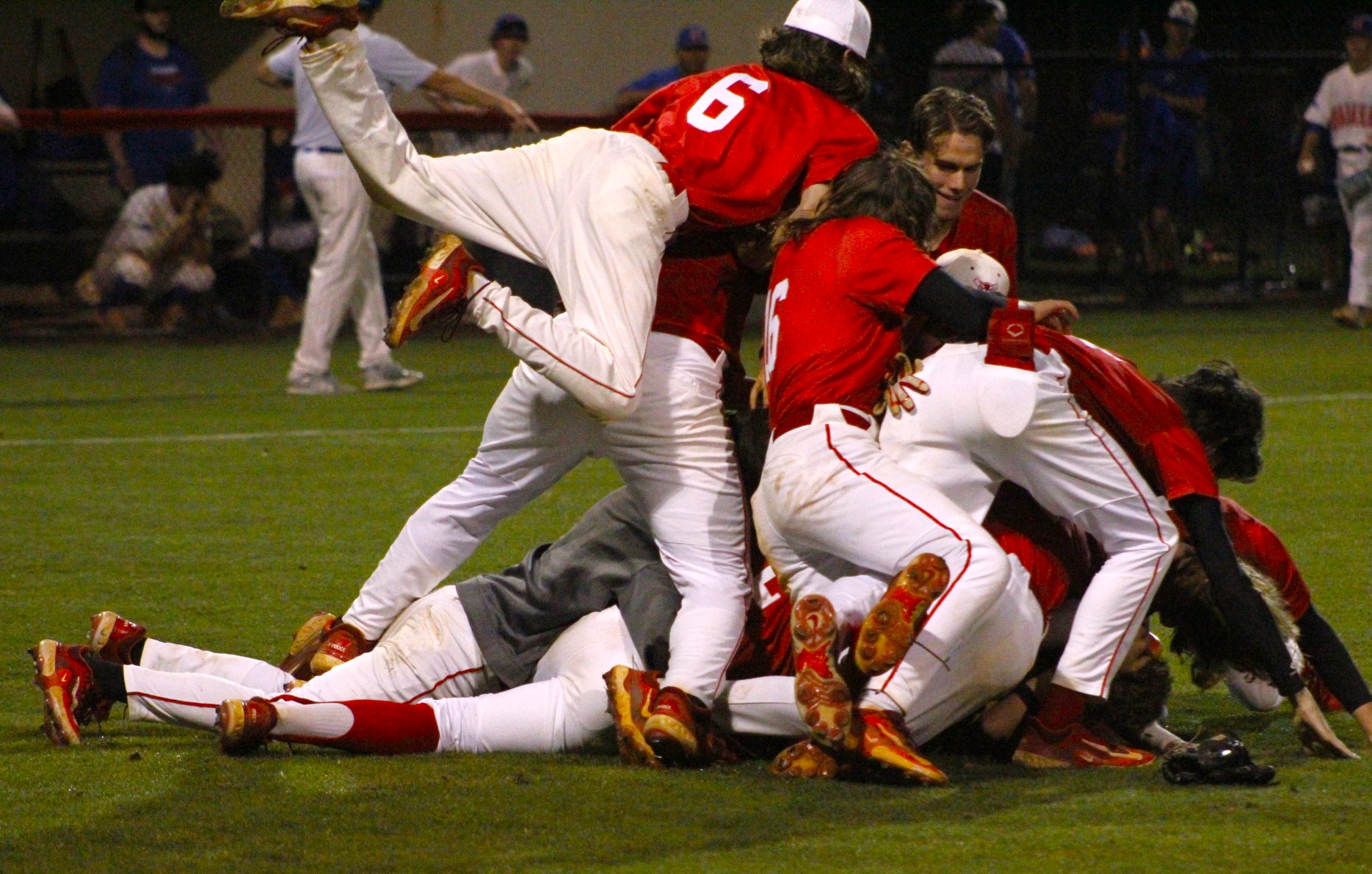 On the ground ball that ends it, second baseman Bryce Young cracks a smile as he throws to first.