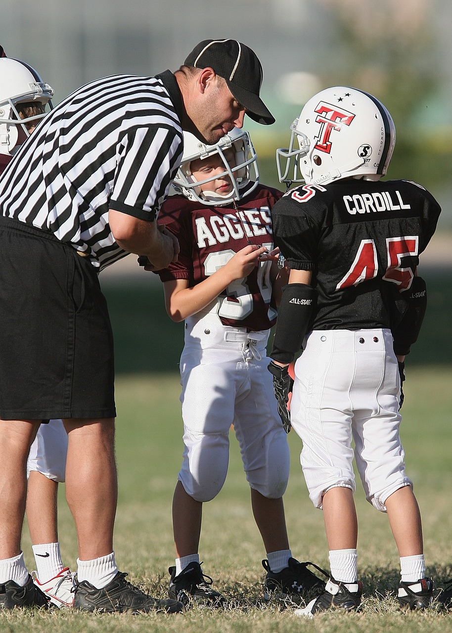 When I was a boy, we played pickup football games and used an ingenious system to choose sides. We all had uniforms of various levels of protection. We’d just show up in someone’s yard or pasture, and everyone who happened to show up in a white jersey played for one team, and everyone in a colored jersey, any color, played for the other. A successful kick went over an electric wire, relatively straight.