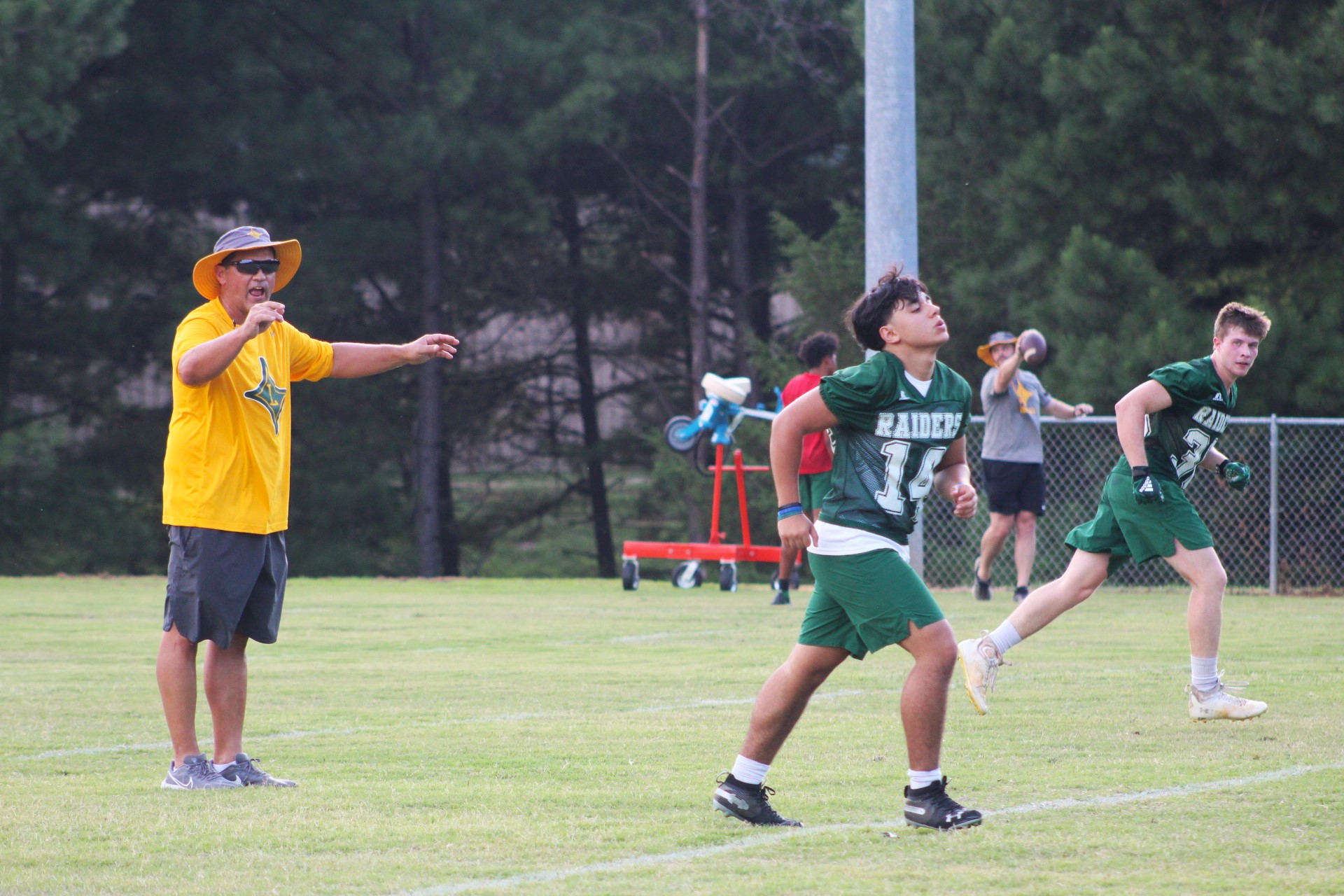 I gambled and came up snake eyes in the afternoon. I estimated it was more likely to catch the Crusaders at 5 p.m., but LA was indoors waiting out the heat, and when I arrived at LDHS, the Raiders were on the practice field. It was useful to become more acquainted with new Laurens Academy head coach Jolly Doolittle, but I headed for LDHS where I discovered the Raiders had been approved to practice with the stipulation that no one wear helmets.