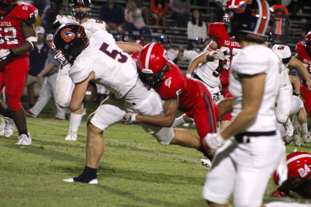 Chapman (4-1) got the ball at its own 13 after Lukas Kuykendall’s 32-yard punt, leading 22-15, and riddled the Red Devils. Chapman’s “big quarterback,” Coleman Gray rushed for 76 yards on the drive. He needed 77 because the Clinton defense stopped him on fourth-and-goal from the two.