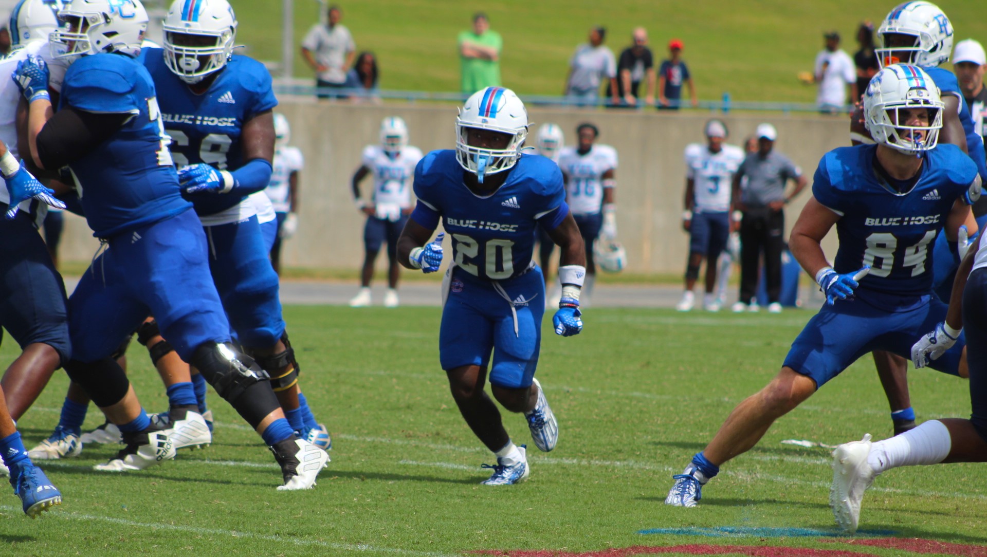 Zach Switzer led the 118-yard Blue Hose rushing effort with 43 yards in nine carries. Jaden Wright gained 27 yards on the ground, and Englehart, who was sacked five times, netted 22 and scored a touchdown.