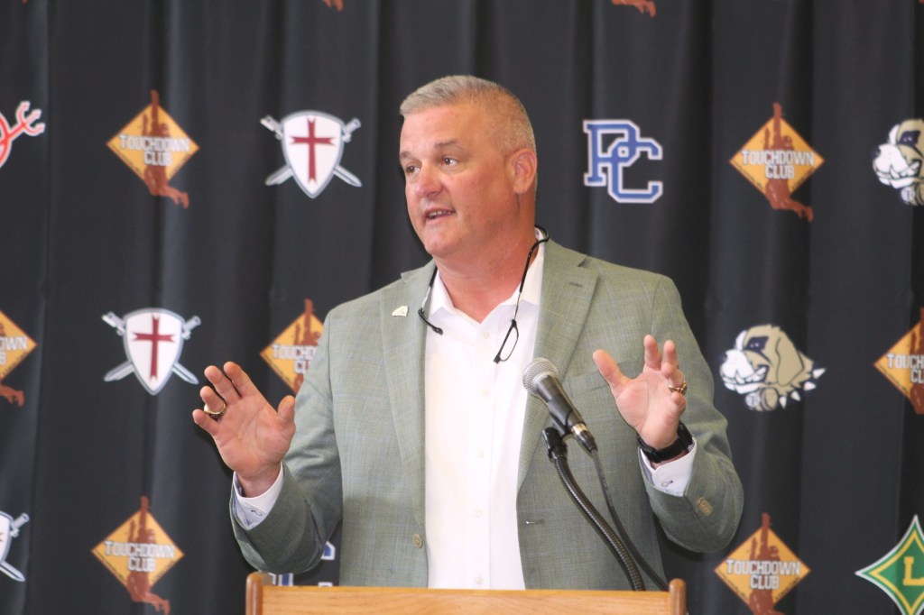 The new executive director of the S.C. Athletic Coaches Athletic Coaches Association, Scott Earley, spoke to an audience of many familiar faces on Thursday at the Laurens County Touchdown Club.