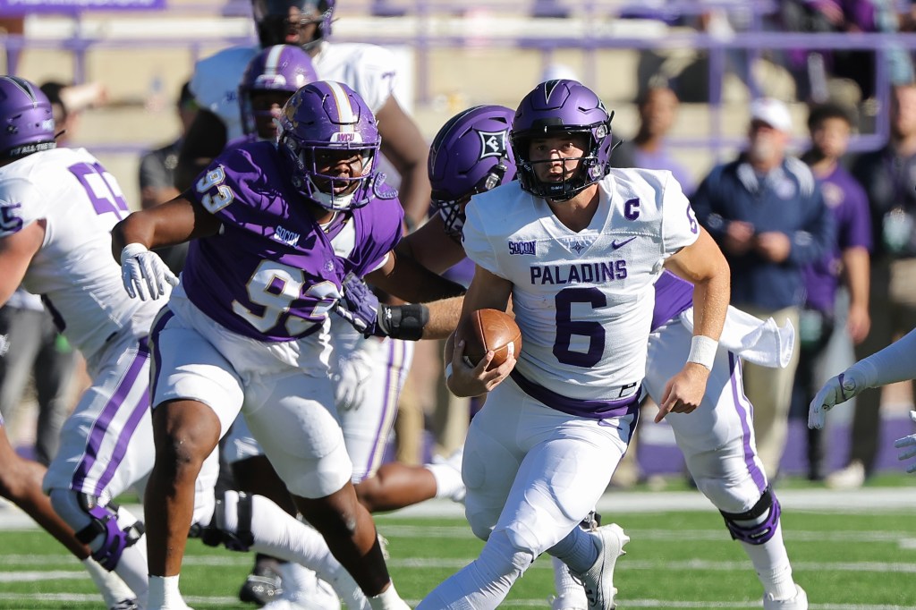 A long Huff touchdown pass was called back by a hold. The Paladins let none of their failures get in the way of victory. They never trailed.