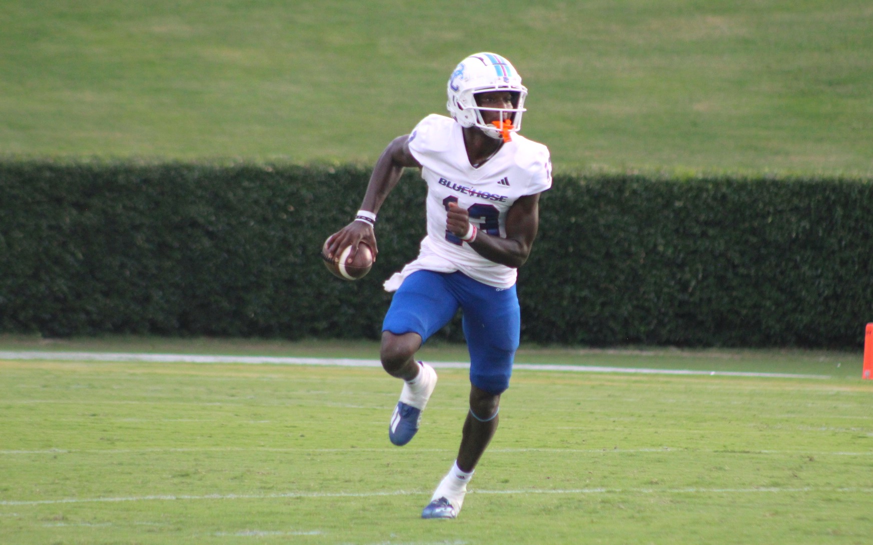 Wesley, the Blue Hose dazzling sophomore signal-caller, rushed for 198 yards and passed for 189. Not only did PC accumulate more offense yards (419-365), but Wesley had more yards than the Wildcats by himself.