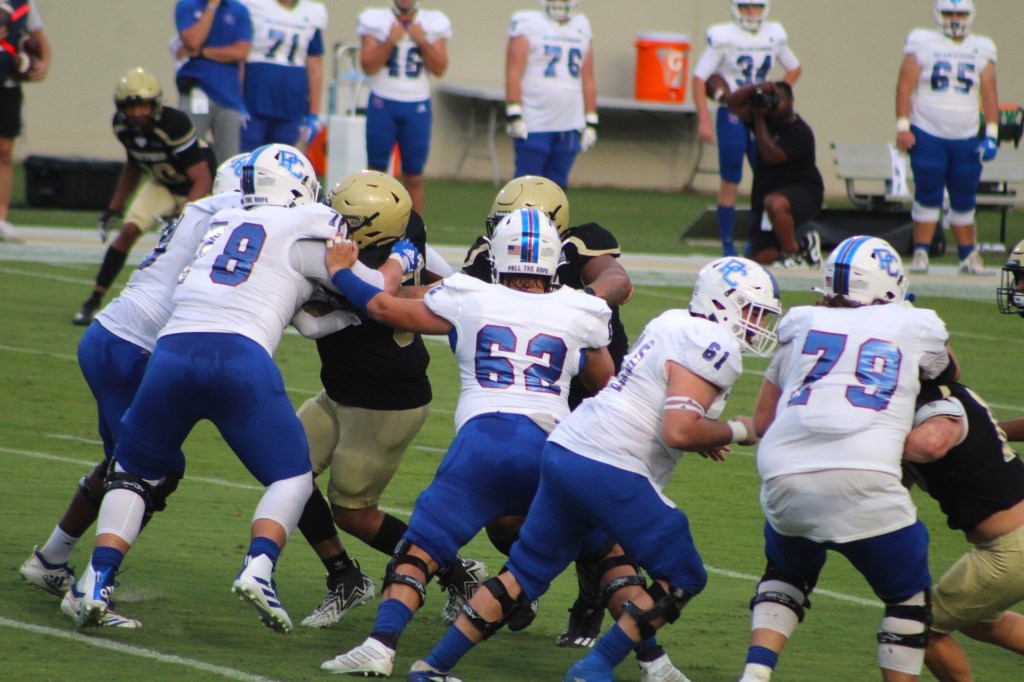 PC’s expedition across the walk-on Pioneer began officially with the Kevin Kelley Year of Living Dangerously, spring 2021. Eight PFL opponents pasted Kelley’s foolhardy tacticians by a combined average score of 69-33. Most of Kelley’s players left when he did, and Steve Englehart’s first team was 1-10.