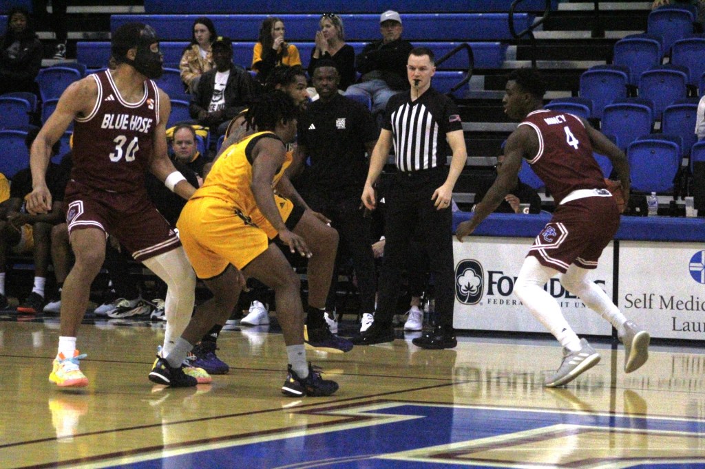 Marquis Barnett, a junior from Saginaw, Mich., leads the Blue Hose, averaging 13.8 points per game. Three – Barnett,Teel and Pierce – score in double figures and seven average more than seven. Pierce is the leading rebounder with a 7.0 norm.