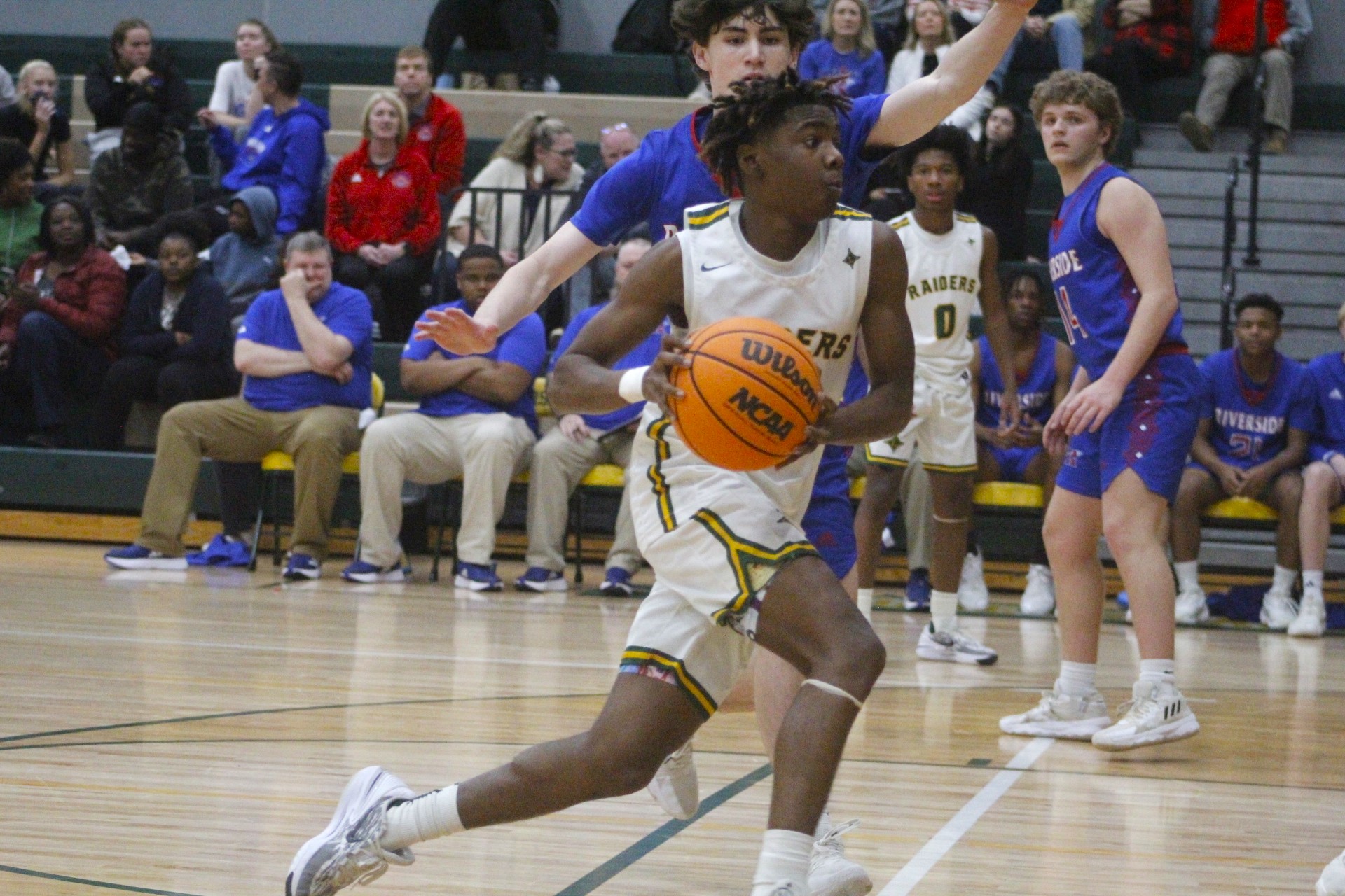 K.J. Singleton scored more points (18) than anyone else in the boys’ game, but Riverside (19-4, 5-1), ranked fifth in Class 4A, defeated the Raiders, 64-44, behind three players tightly aligned in double figures.