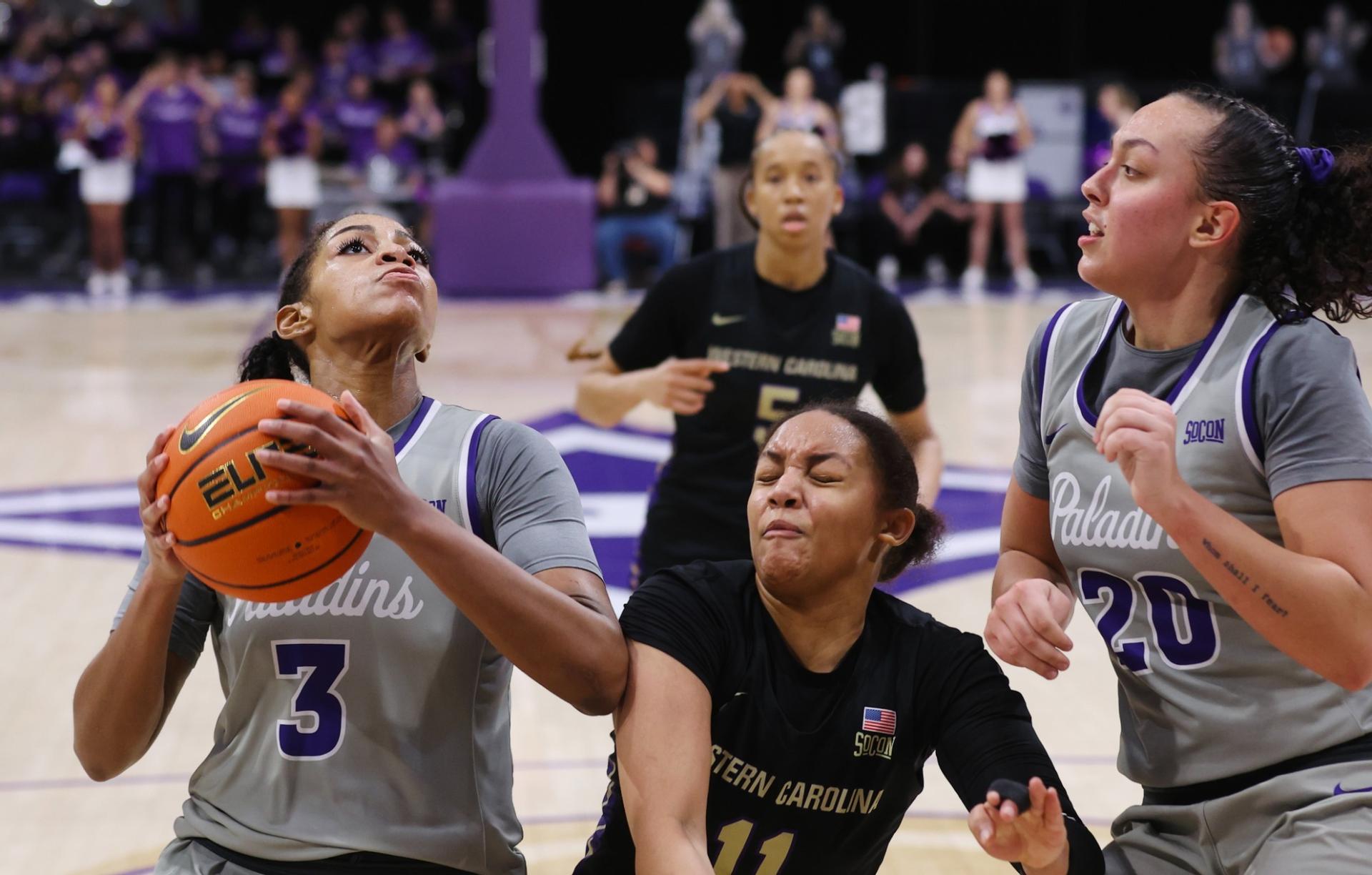 Western Carolina (6-18, 1-8) scored the first six points of the fourth period on baskets by Lonasia Brewer and Tyja Beans, which sandwiched a pair of Chelsea Wooten free throws, provided a 51-45 lead with 6:26 remaining. The Catamounts, however, went scoreless over the next five minutes, allowing the Paladins to chip away and grab their first lead of the game on Session’s three-point play.