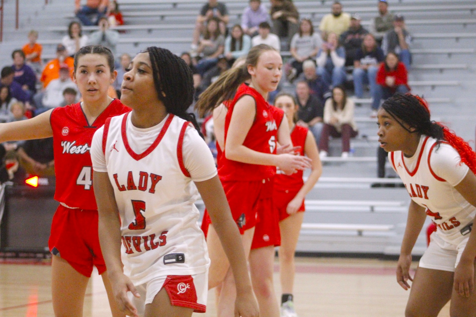 The Red Devils played hard and pressed throughout, forcing 26 Warrior turnovers, but Clinton’s hustle and aggressiveness was offset by West-Oak’s 32-19 command of the glass.