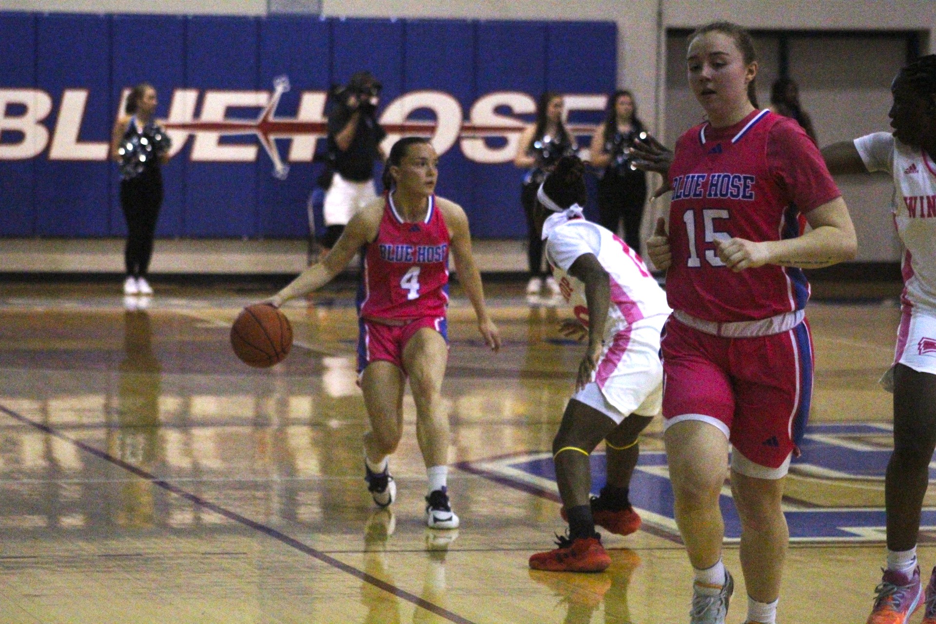 Reddish-Rhone added 10 rebounds to produce a “double double” for the first time this season and second of his Blue Hose career. Koby Stewart made five steals in a game in which both teams committed 12 turnovers.