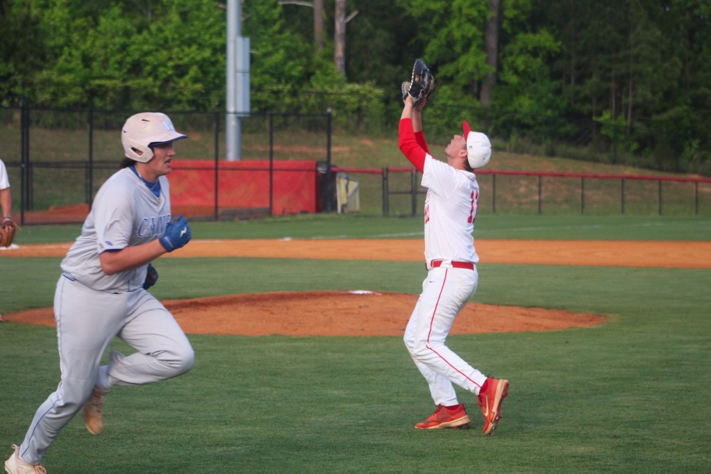Left fielder Brett Young, the only Red Devil with two hits, singled to lead off but was thrown out on an attempted steal. Third baseman Zane McLendon lined out on a shot tracked down by Wren center fielder Jowers. Carson Glenn, the designated hitter, doubled, and Harrison Moore’s single drove in Glenn, and another double, by catcher Luke Young, drove in Moore.