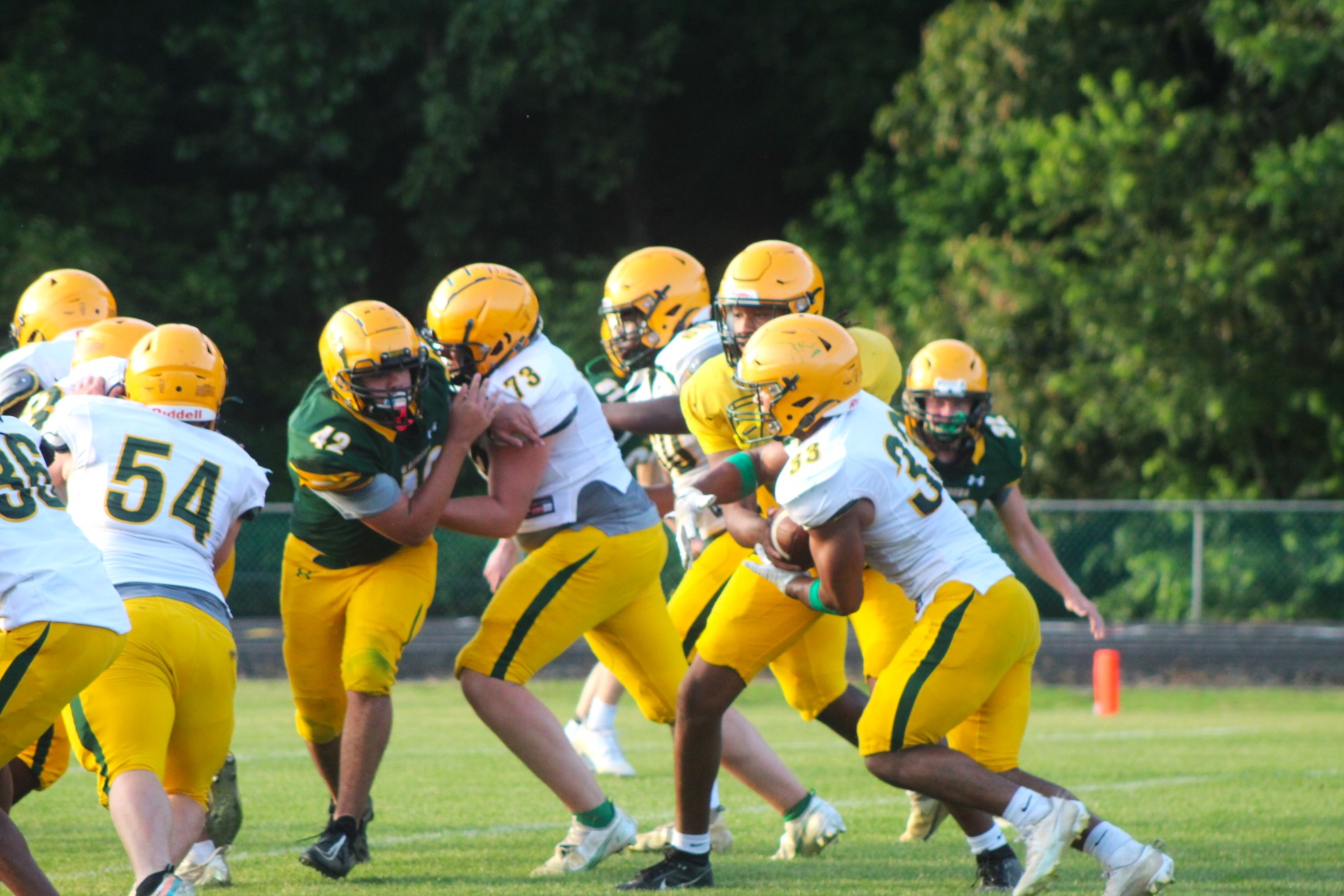 At the end, the fact that the scoreboard read 21-0 made little sense. It wasn’t surprising, given that the white team was offense and the green defense, and it is not uncommon for offenses to score more points than defenses.