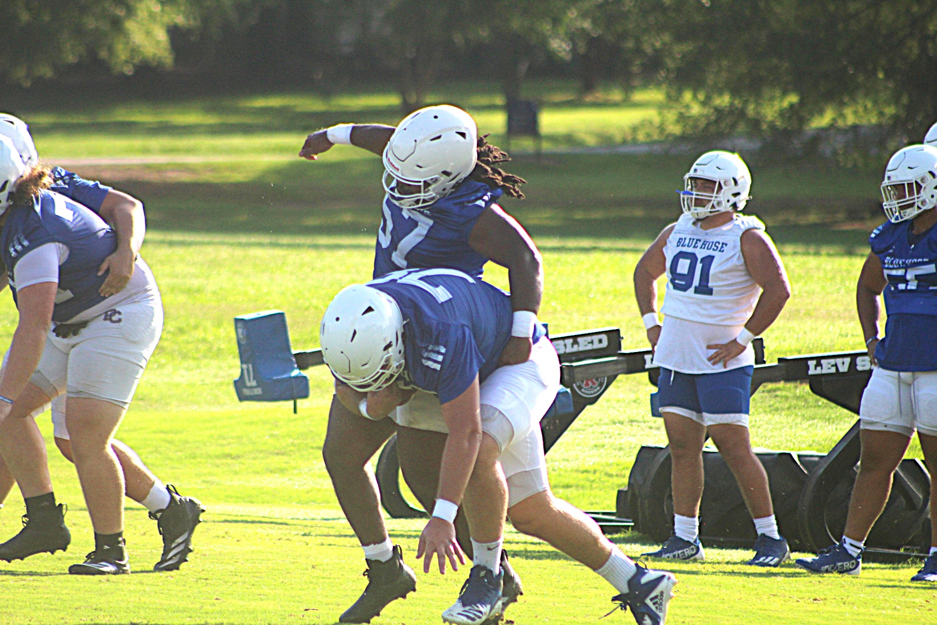 In Englehart’s first season, PC was 1-10. Last year’s mark was 4-7. In the far-flung Pioneer Football League, the Blue Hose improved from 0-8 to 2-6. If any game was a portent of possibilities to come, it was a 23-20 upset of Wofford on Sept. 16. The Terriers went 2-9, but the Terriers have scholarships.
