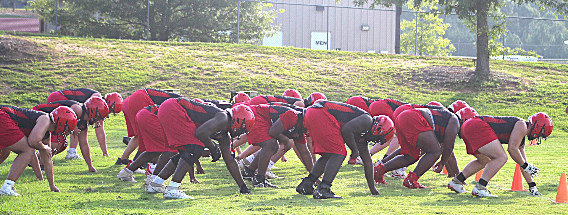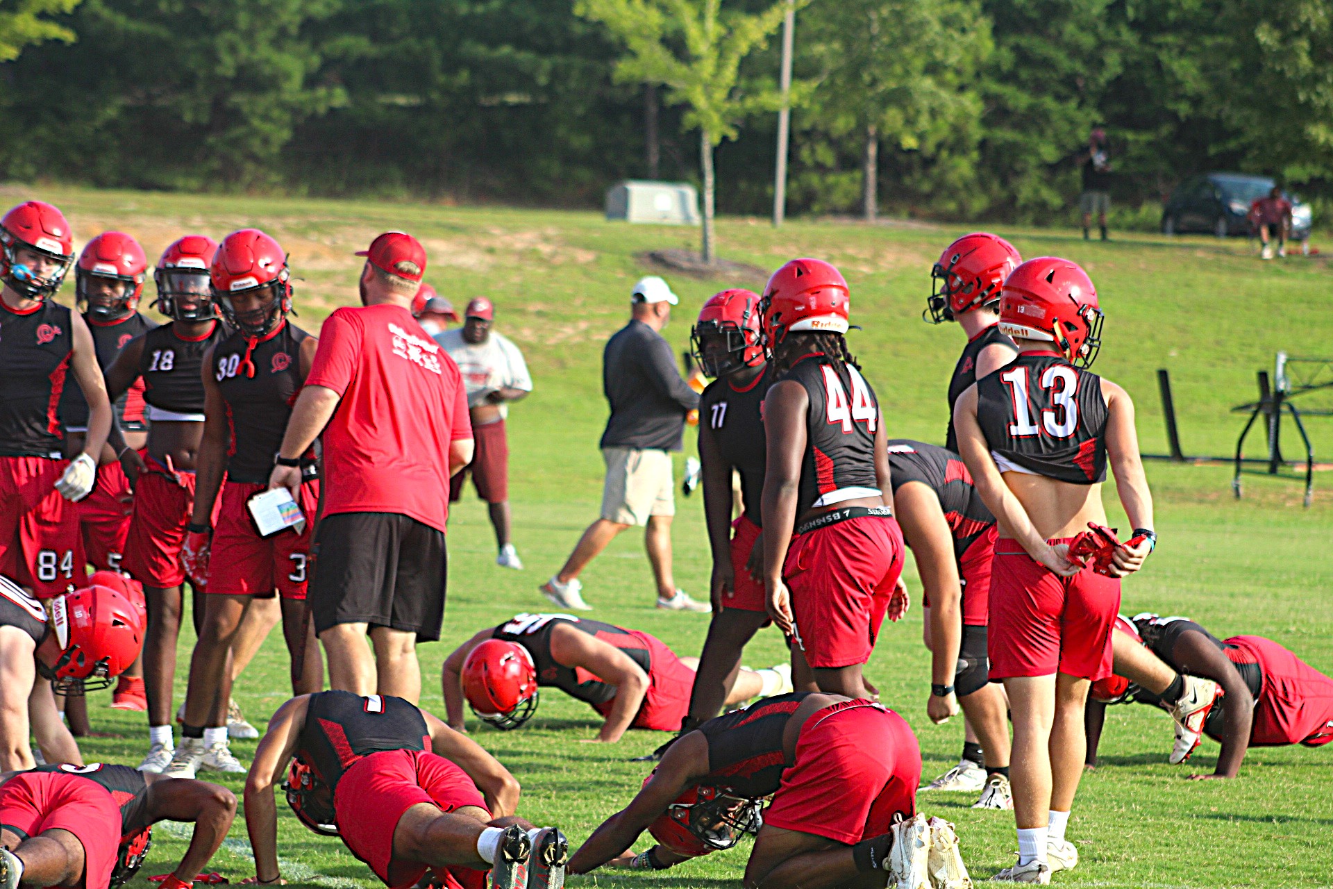 It wasn’t hot … yet. It wasn’t yet 8 a.m. when the varsity Red Devils joined the JVs out on the practice field Saturday morning.
