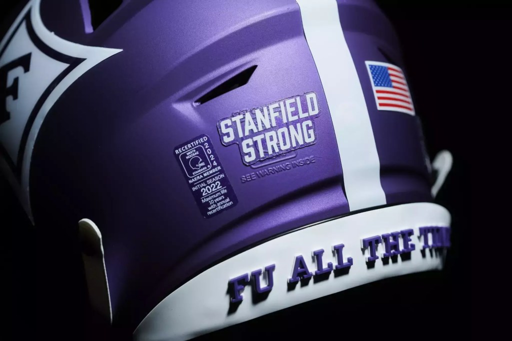 All three helmets feature a “Stanfield Strong” decal on the back, as well as SoCon and American flag decals.
