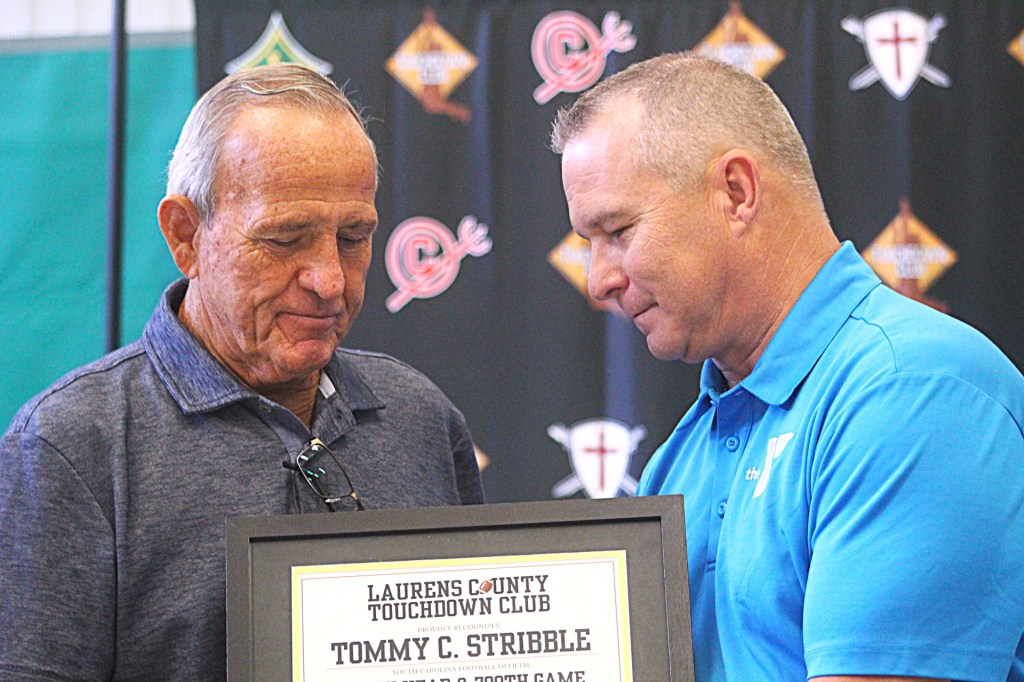 County official Tommy C. Stribble is officiating the 700th football game of his distinguished career and is to be honored at the game, as he was at the TD Club gathering.