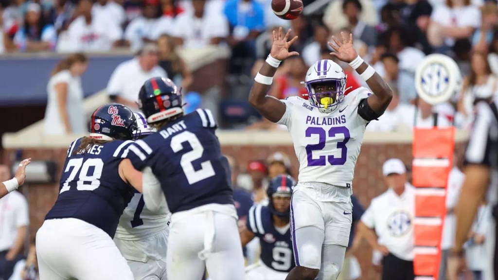 That’s what Mississippi played on Saturday night. Surprising no one without an inordinately large store of purple merchandise, the Rebels pummeled the Paladins, 76-0, on Saturday at Vaught-Hemingway Stadium.