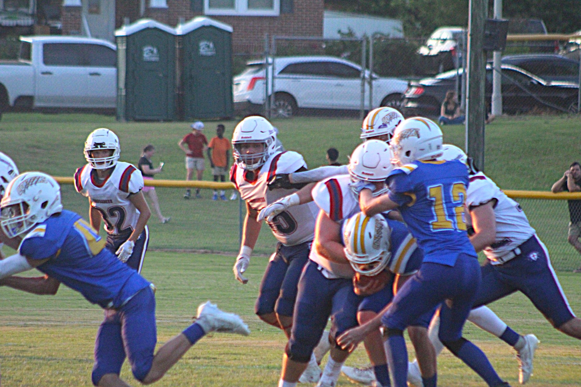 Defense ruled the evening. Early in the third quarter, the Raiders’ Caleb Gilchrist intercepted a pass in the end zone to stop a Red Devil drive, and Clinton (1-0) made a fourth-down stop late in the game to preserve the victory.