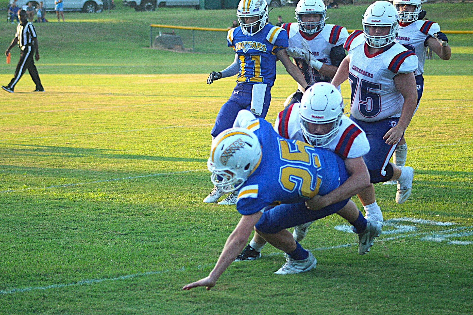 The Crusaders’ leading tacklers — Garrison Vaughan, Anthony Candelas and Hardy – all average at least seven a game. Vaughan (4.0) and Murphy (3.0) lead in quarterback sacks.