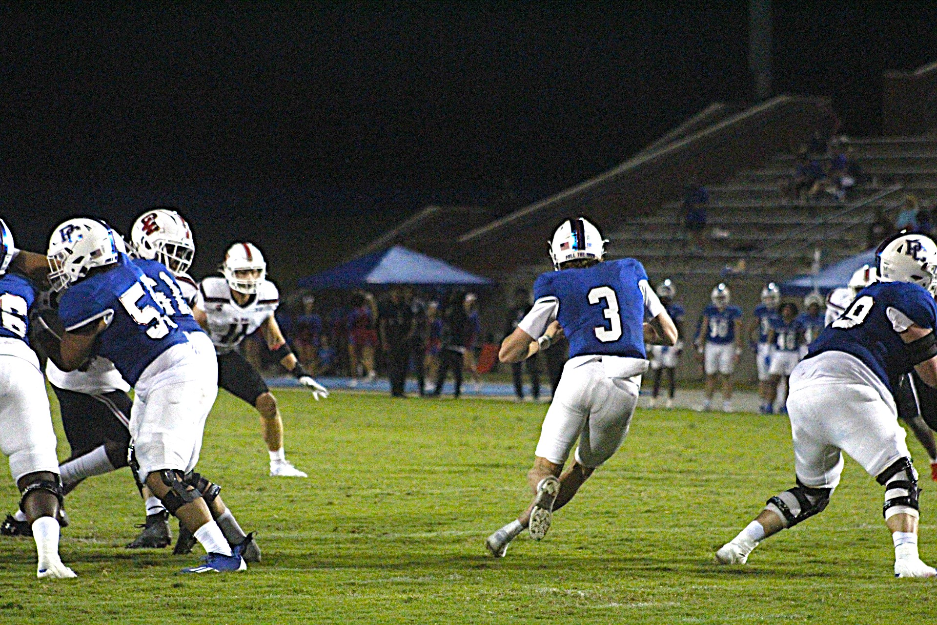 Two of Presbyterian’s three TDs came on quarterback keepers, one by Englehart and another by Collin Hurst. The latter occurred with 10:06 in the fourth quarter, putting PC up, 21-14, until the dual disasters.