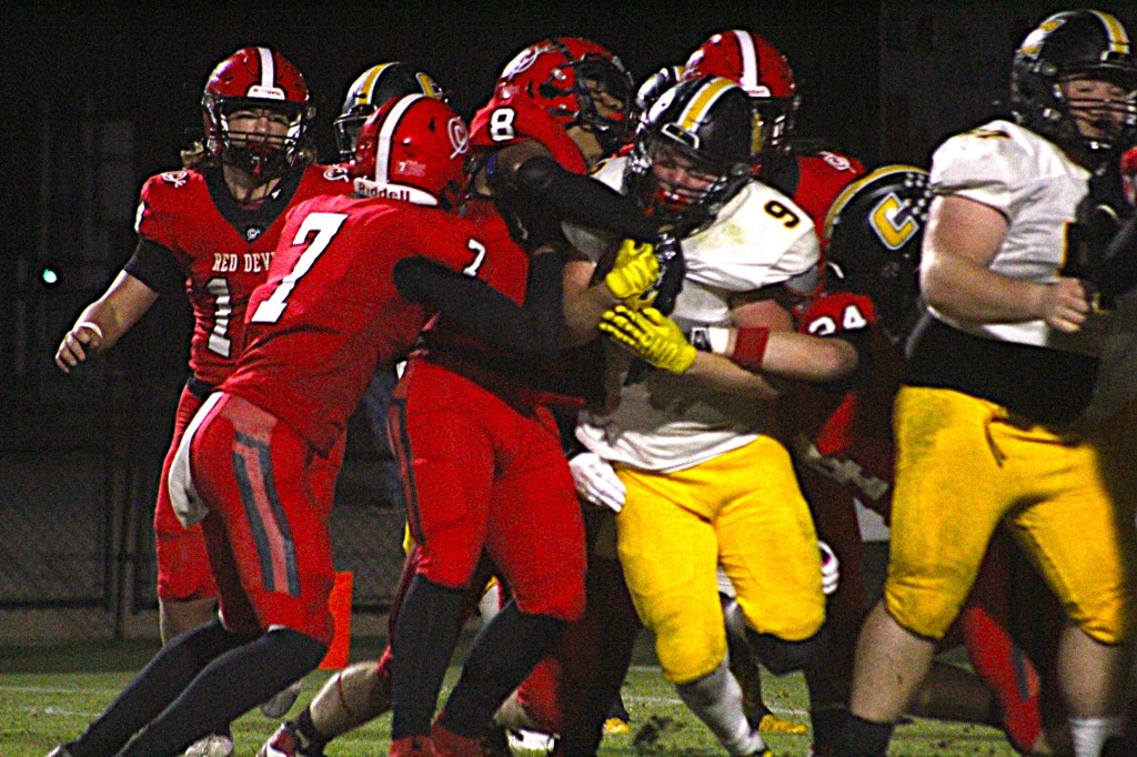 At the beginning, the Red Devils went to work right away and produced a 30-yard connection from Richardson to Swindler that, coupled with Gilliam’s conversion run, put Clinton ahead to stay, 8-0.