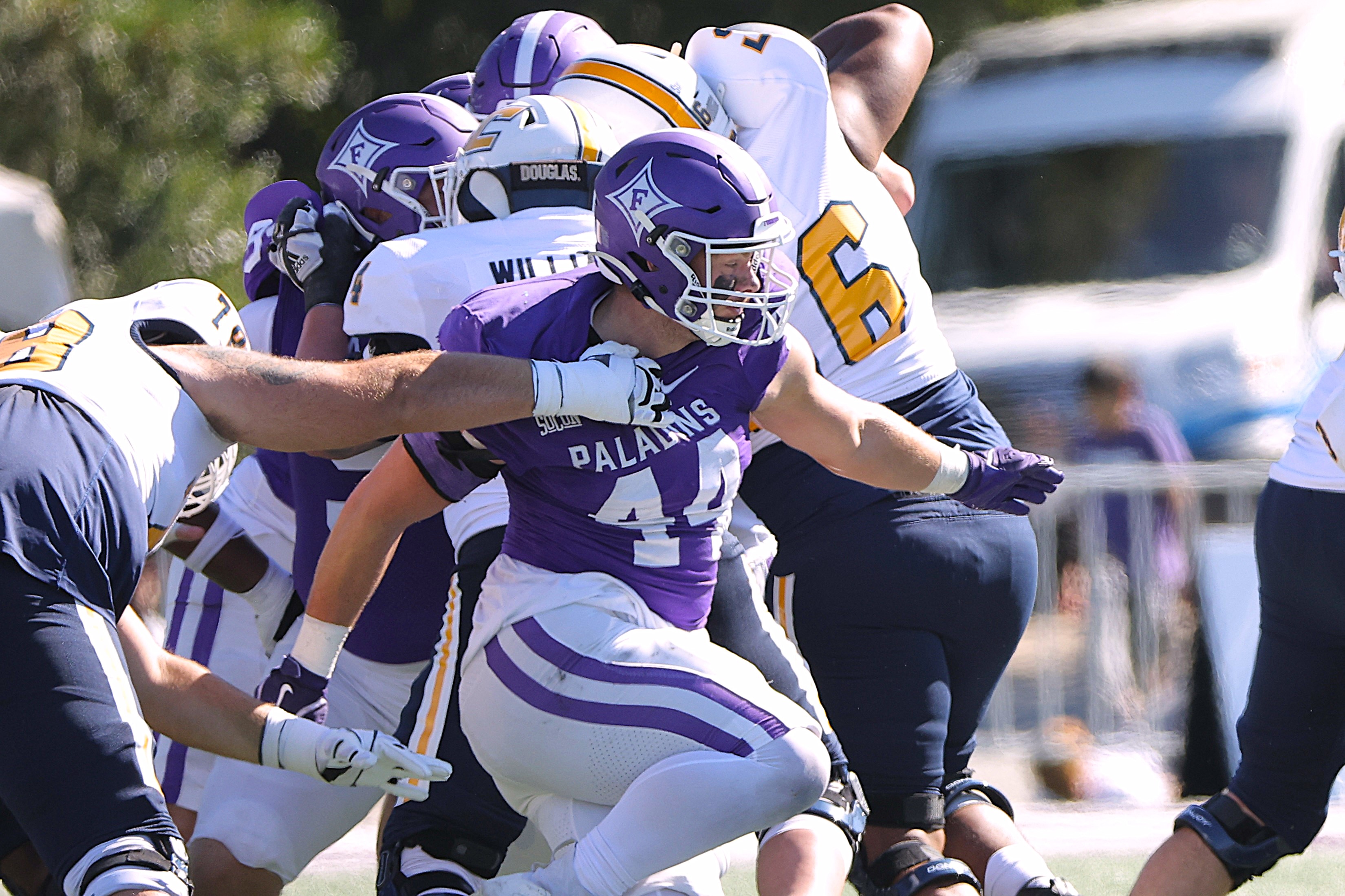 The Paladin defense, led by linebacker Evan DiMaggio (10 tackles, 2 sacks) amassed three sacks and two interceptions in keeping WCU’s high-powered offense in check.