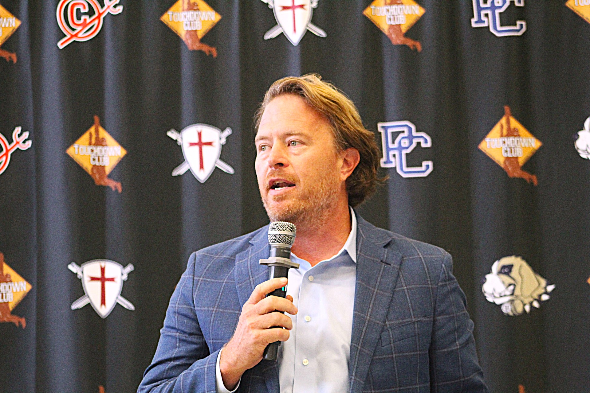 Charlie Wentzky, who oversees football for the S.C. High School League, spoke to the Laurens County Touchdown Club on Thursday. The cans generated by football have enough worms in them to dig an acre of topsoil and bait the hooks of a bamboo forest.