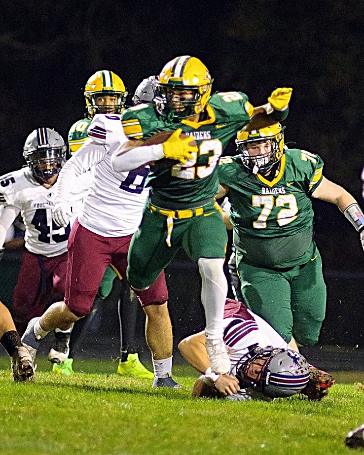 The Raiders led 14-6 entering the final 12 minutes against the Fury. The final score was 35-14. Fountain Inn (6-4, 2-3 Region 1-4A) broke the game open with two rushing touchdowns, of 39 and 1 yards, by sophomore Bojack Johnson in the first 5:45 of the final quarter.