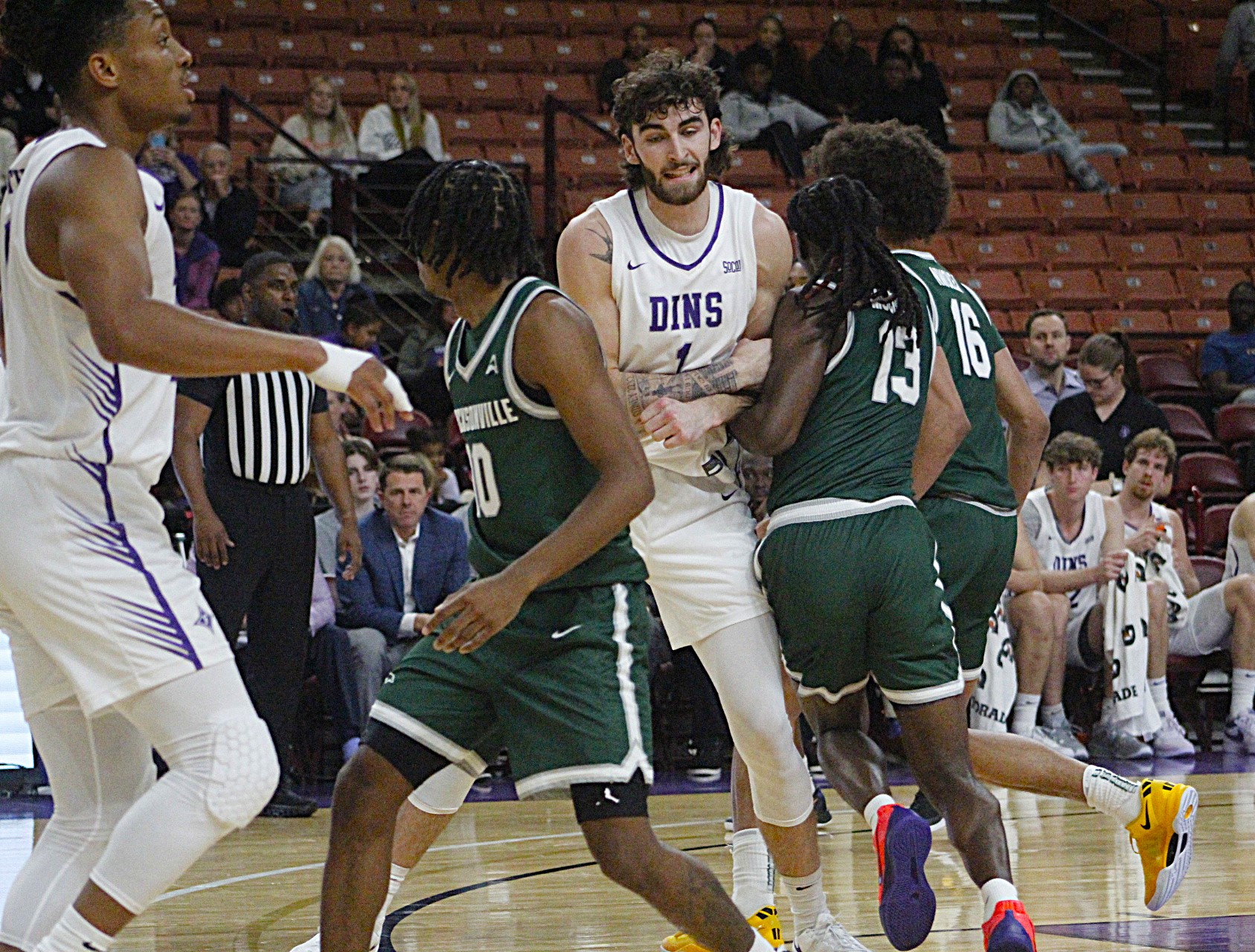 It was a fierce draw. Both teams had 39 rebounds, but the Dolphins won the offensive boards, 15-9. Individually, Garrett Hien pulled down 14 for the Paladins, Stephon Payne III 13 for Jacksonville.