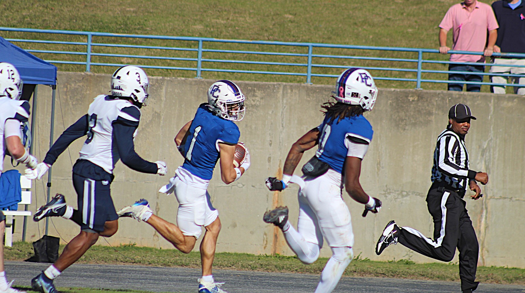 PC answered its only deficit by driving 75 yards, capped by Warner’s latter score. Both teams missed PATs, and the score was 20-20, but Jennings’ 10-yard rush gave the Blue Hose the lead for good.