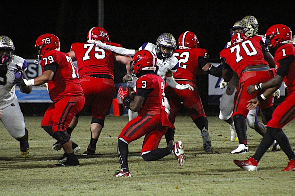 Batesburg-Leesville’s prodigious rusher, Amadre Wooden, looks as if he makes two of Cook in size. He gained 75 yards in 19 carries. Watkins was 9/19 for 89 yards. Maison Tinsley intercepted Watkins in the fourth quarter.