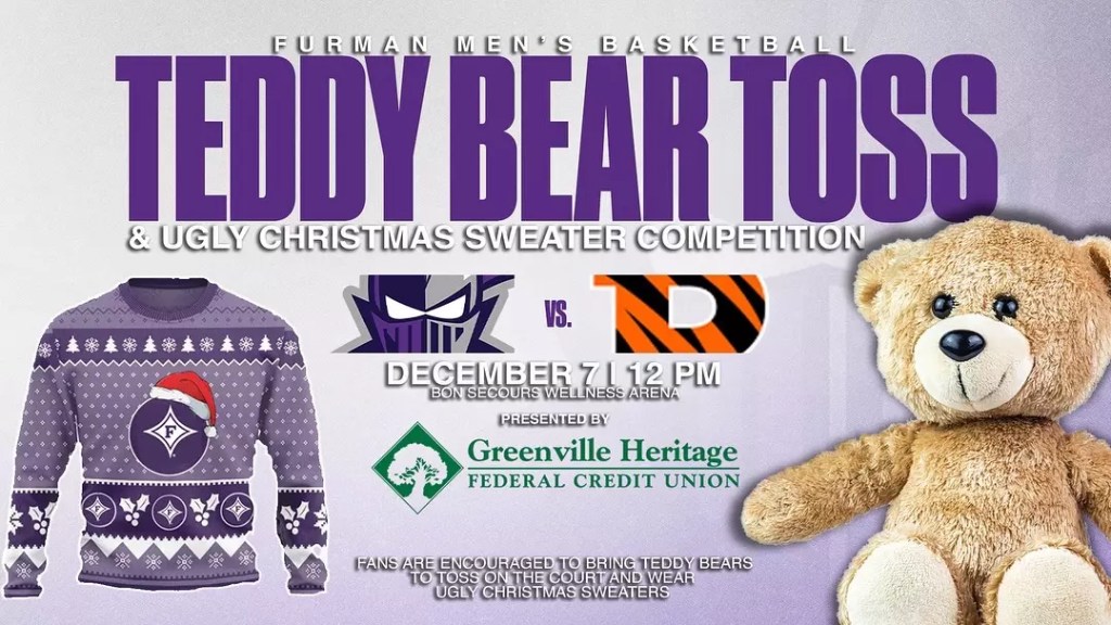 Fresh off a four-game road trip, Furman returns home to play the Tigers in a matchup of mid-major powers. There’s an ugly-sweater contest and a holiday teddy-bear toss.