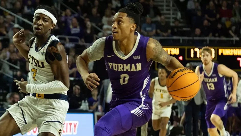 ETSU held Furman without a field goal over the final six minutes and ended the game on a 12-2 run to defeat the Paladins. Trailing 67-60 with under three minutes to play, ETSU’s Jaden Seymour completed a three-point play at the foul line and Quimari Peterson converted on a pair of trips to the charity stripe on the Buccaneers’ next possession to trim the Furman advantage to 67-65. After another stop by the ETSU defense, Seymour evened the game at the foul line with 1:40 remaining.