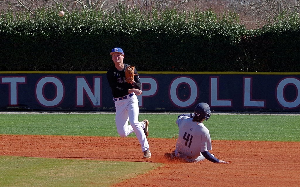 The Blue Hose baseball team swept a season-opening Friday doubleheader, 7-6 and 6-5, over the Hoyas, who saved some face on Saturday by defeating PC, 5-1.