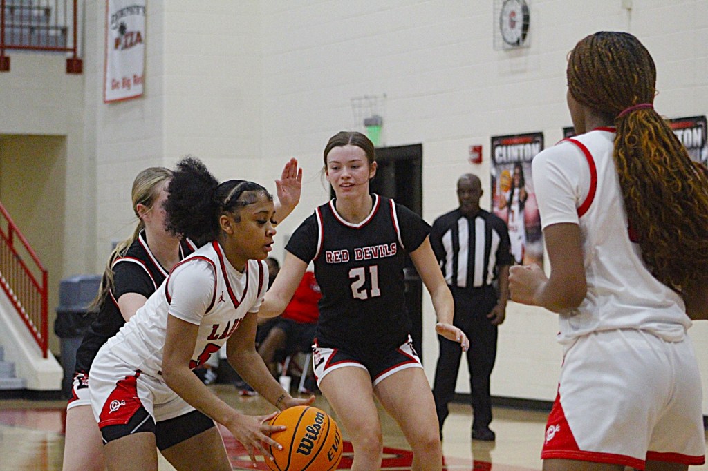 Eight Red Devils scored, led by Bryanna Belton’s 17 points. Three more – Nah’shia Wright (13), Mylayja Thompson (12) and McKenzie Clark (10) – joined the double-figures party.
