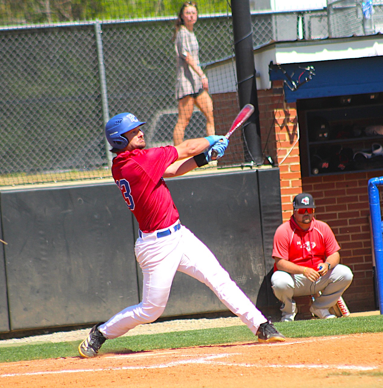 In the Presbyterian fourth, Ouzts led off with a blast to left. Ryan Becker followed with a single, and Brody Linker drew a walk. With Rhogue Wallace pinch-running for Becker, Eli Lazio laid down a bunt single to load the bases. Albertus, Hobson, Randolph, and Dewberry each worked walks to bring in four runs. Later in the inning, Wallace stepped up for his first at-bat and roped a three-run double down the left-field line, putting the Blue Hose ahead, 13-11.