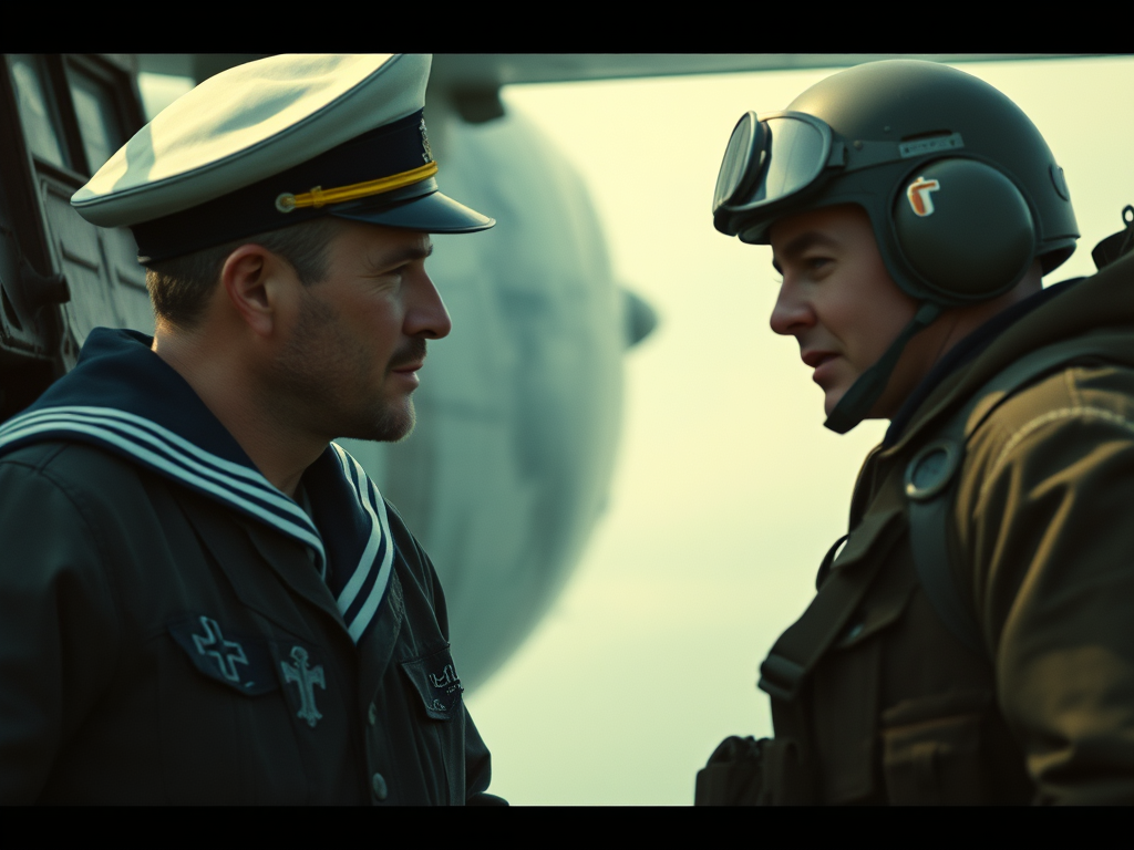 Both men are torn. Hagan is the son of German immigrants whose latest mission has rained weapons of destruction on a city where his relatives live and work. A decorated sailor, Albrecht cannot knowingly send his colleagues to a sure death.