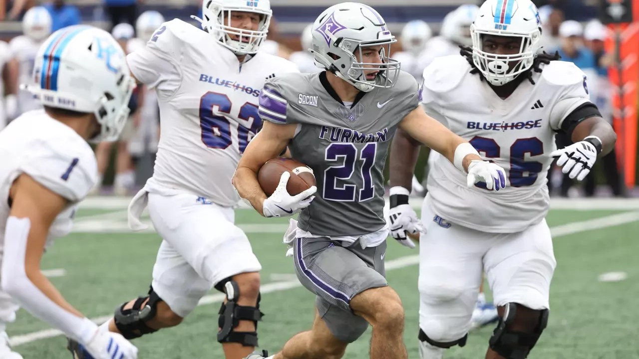 Gavin Hall rushed for a pair of first-half touchdowns as the Paladins raced out to a 28-14 lead. Quarterback Trey Hedden completed 29/40 passes for 263 yards and one touchdown. Both teams were guilty of three turnovers, highlighted by two interceptions from Furman’s Billy Lewis.