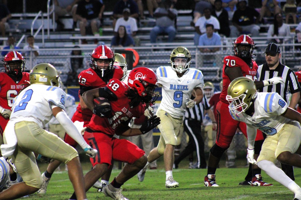Manny Major led Daniel with 81 yards overland. Quarterback Jace Grass completed 13/26 passes for 145 yards. The Lions passed for 145 yards and rushed for 191. The Red Devils passed for 56 (Glenn was 7/13) – and rushed for 301.