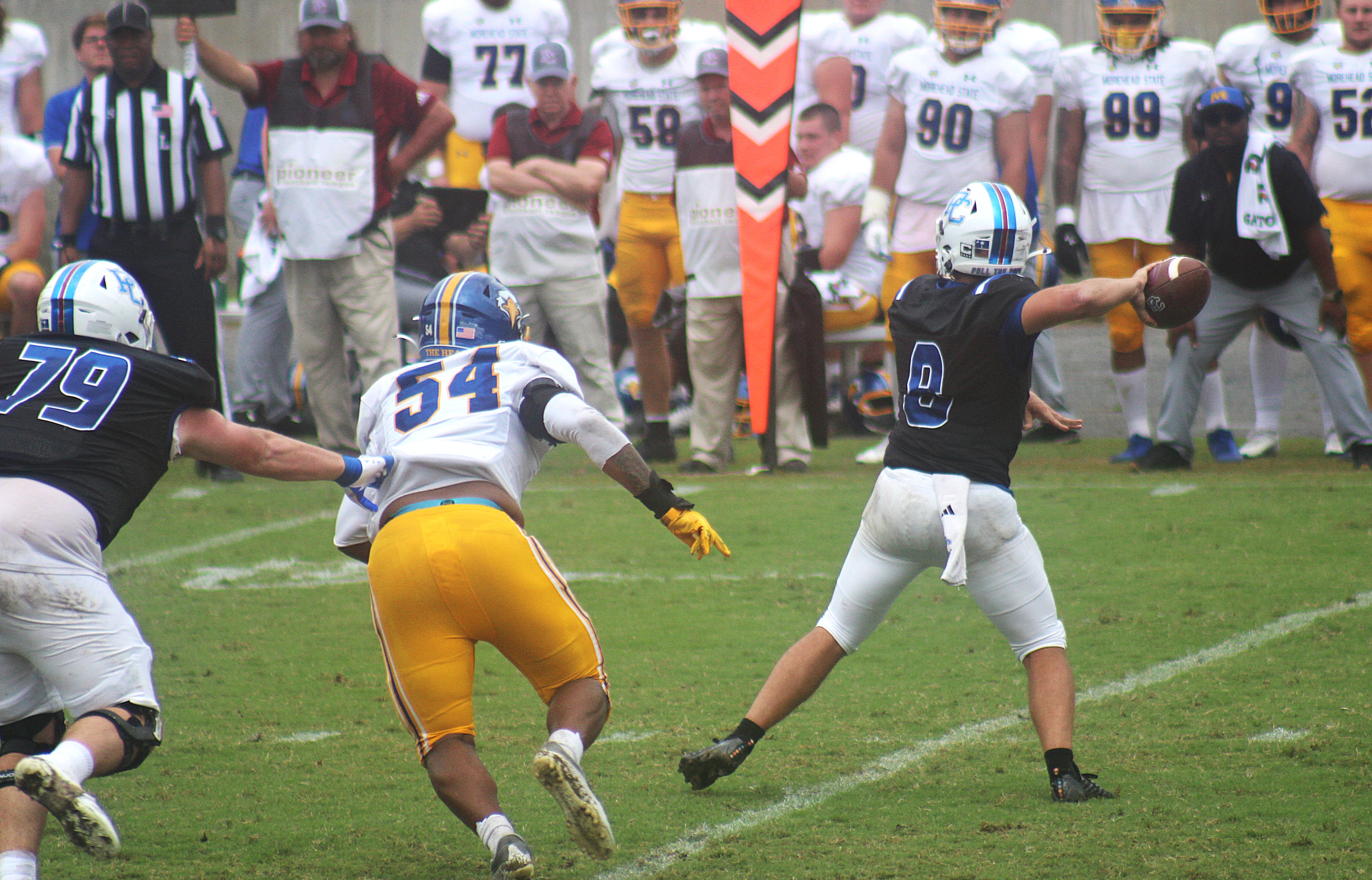It didn’t even rain much, except figuratively on the Eagles. Morehead State’s Carter Cravens hit 10/24 aerials for 120 yards, yielding Francis’s two reversals.