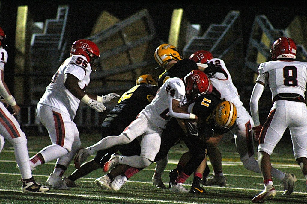 Three Red Devils – Cook, Vance and Angelo Cromer (four carries, 106 yards, 74-yard TD) – exceeded the century mark. The fourth member of Clinton’s Quick Quartet, Zy Butler, suffered a thigh bruise on the first play but recovered sufficiently to intercept a pass by Chesnee’s Evan-Reece Lawter in the fourth quarter.