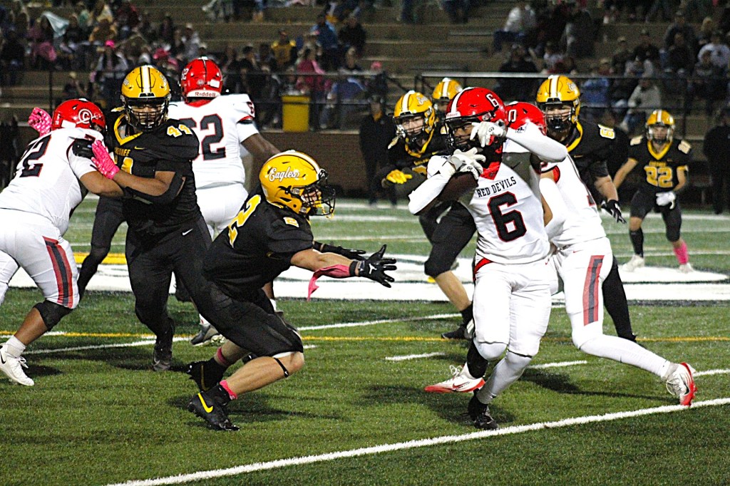 CHESNEE – A heap of Clinton Red Devils figuratively burned the Eagles’ Nest to a crisp on Friday night. Chesnee swooped, swung and soared but simply couldn’t keep up, falling by a score of 50-29.