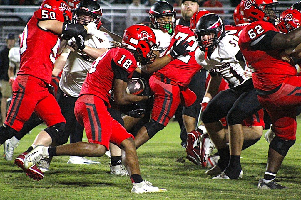 The great Brian Kingsborough rushed for 292 yards against Riverside in 2006. Last year quarterback Tushawan Richardson averaged 10.3 yards a carry on Clinton’s state championship team. Through nine games, Cook has 1,284 yards in 116 carries for an average gain of 11.1. Four Red Devils – Cook, K.J. Vance, Angelo Cromer and Jaiden Jeter – averaged at least 10.8 on a foul Friday for the Cardinals.