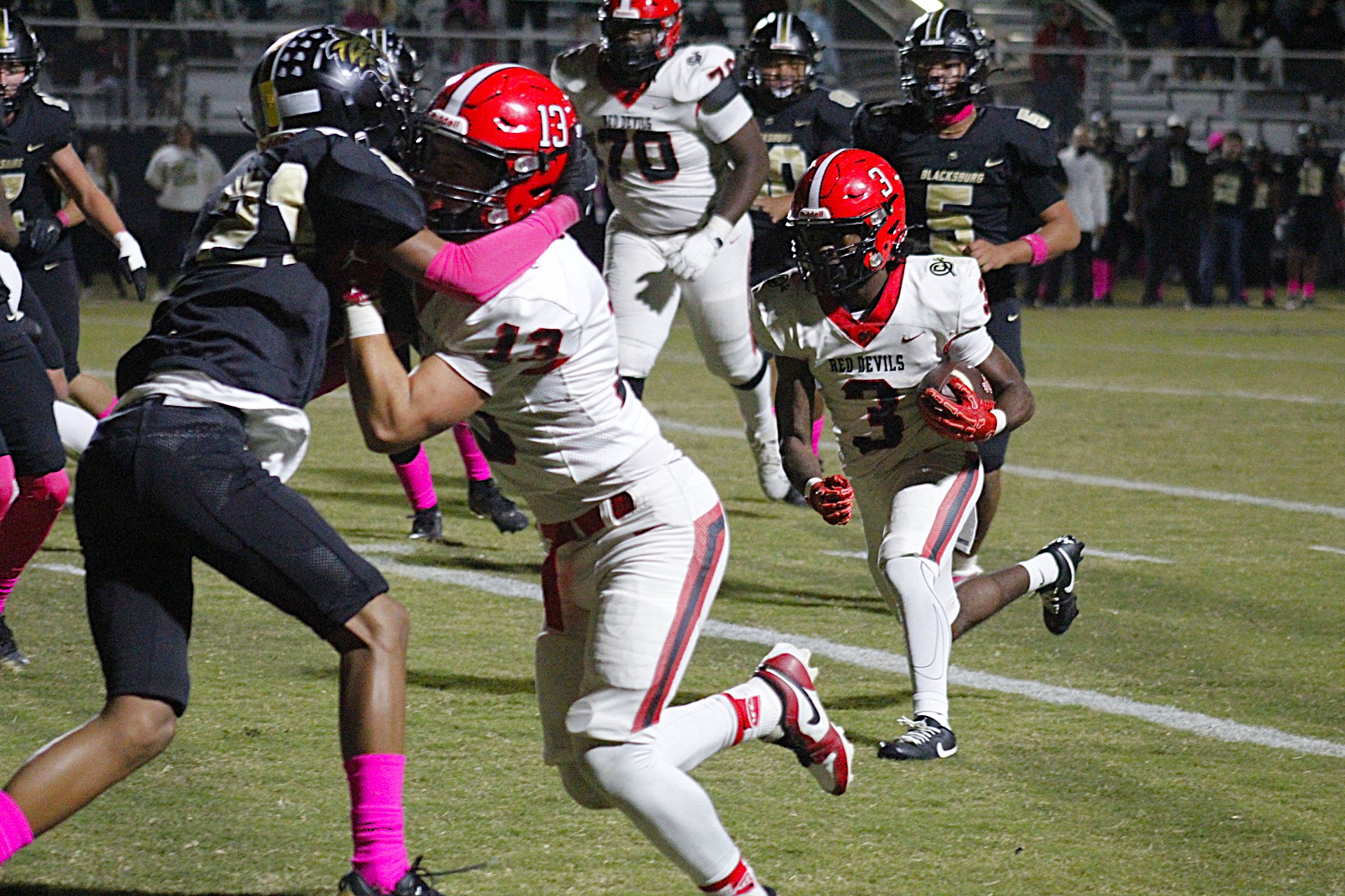 Jonathon Phillips scored the only Blacksburg touchdown with 6:40 remaining, catching a 12-yard pass from Trevon Clark, who led the Wildcats in rushing with 66 yards in 24 carries.